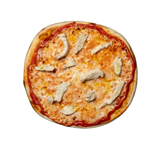 salsa de tomate, mozzarella pollo, aceite de olivo